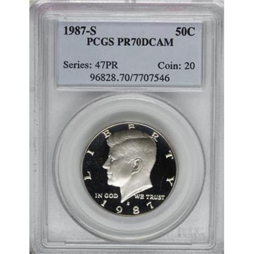 <B>1987-S 50C PR70 Deep Cameo PCGS.</B></I> PCGS Population (90/0). NGC Census: (36/0). Numismedia Wsl. Price for NGC/PCGS coin in PR70: $300. (#96828)<BR><BR><b>Shipping:</b> Coins & Currency (<a target="_blank" href="http://www.heritageauctions.com/common/shipping.php">view shipping information</a>)