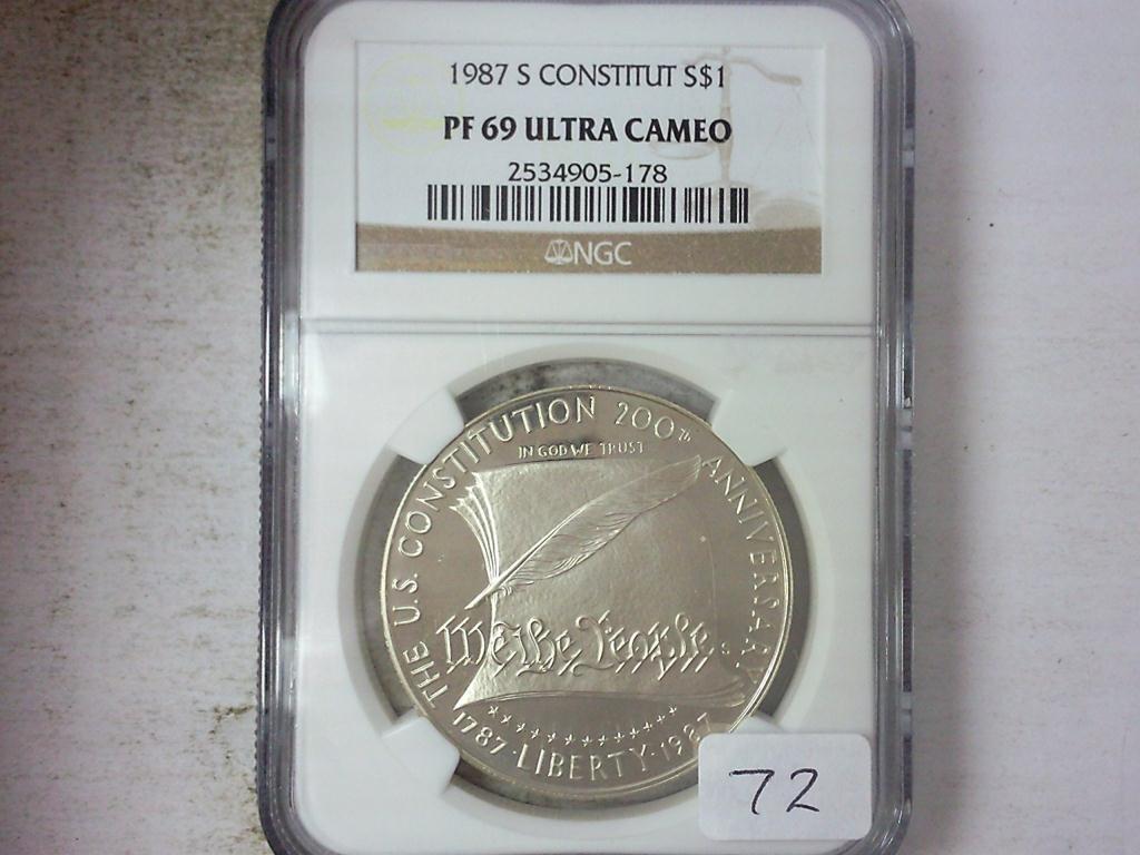 1987-S CONSTITUTION SILVER DOLLAR NGC PF69ULTRACAM