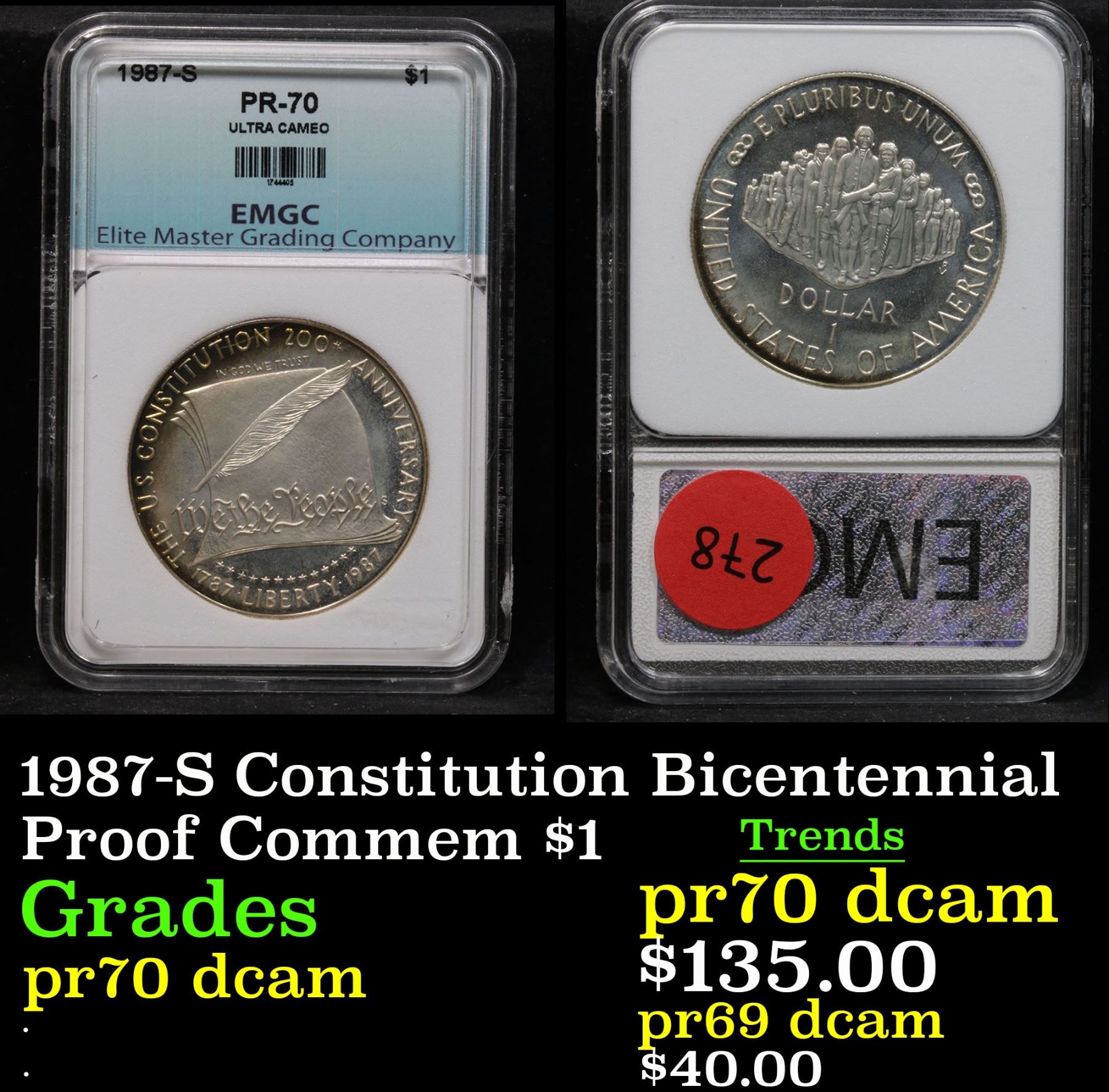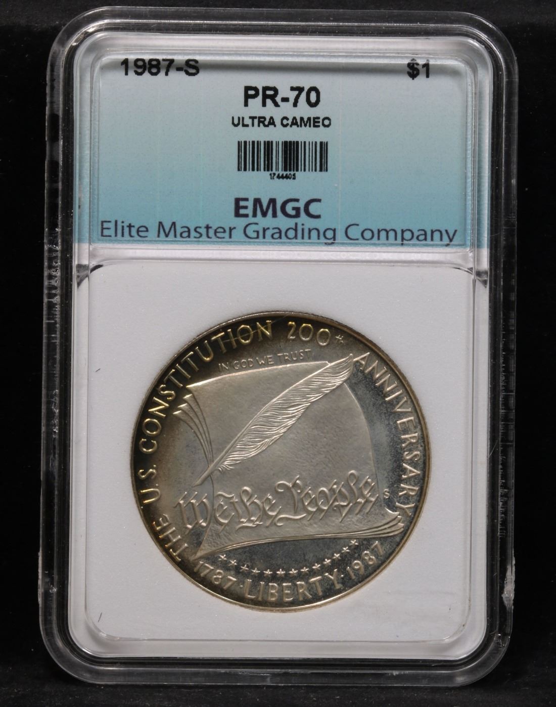 1987-S Constitution Bicentennial . . Modern Commerative $1 1 Graded Perfection Gem++ Unc By EMGC.
