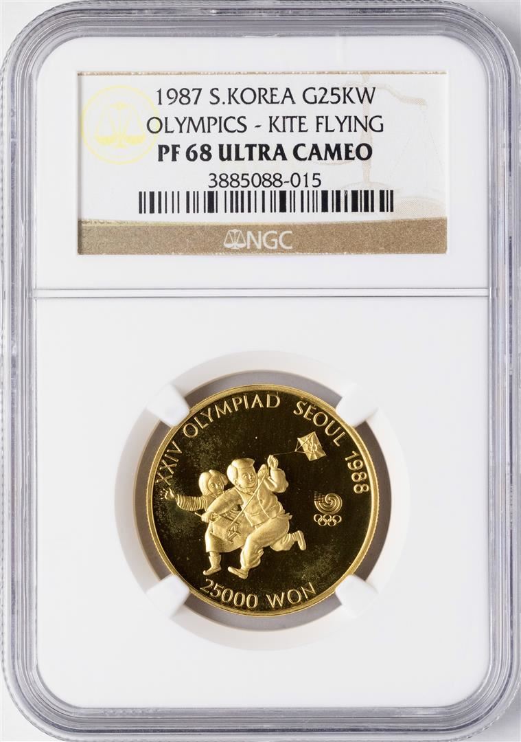 One 1987 S. Korea $100 Proof Olympics Commemorative Gold Coin NGC PF68 Ultra Cameo. NGC Certified.