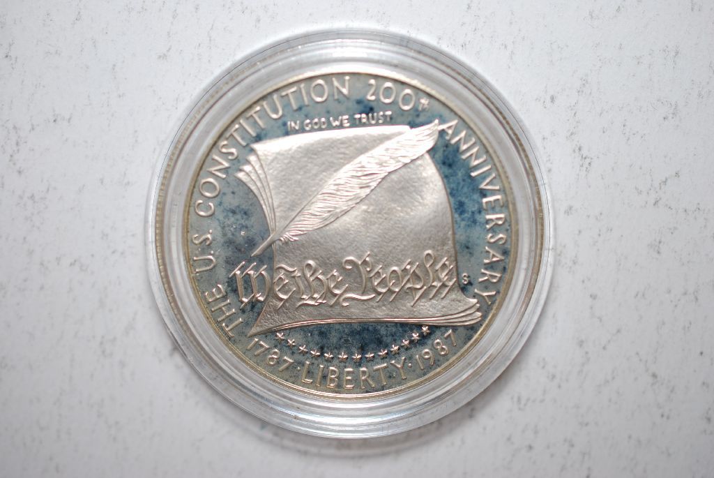 1987-S US Constitution 200th Anniversary Commemorative $1 In Velvet Box; .900 Silver .8594 Oz.; EST. $30-40