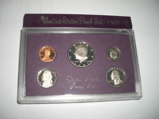 1987-S US PROOF SET ORIGINAL BOOK VALUE $11.00 *COMES WITH THE KENNEDY HALF DOLLAR*!! COIN SET CAME OUT OF SAFE!! ***Coin, Currency & All Items Listed in this auction - Grades, Conditions and Values are not Safe Deposit Coins LLC Responsibilty. Grades, Condition and Values are determined by Consigner(s) & Buyers ONLY