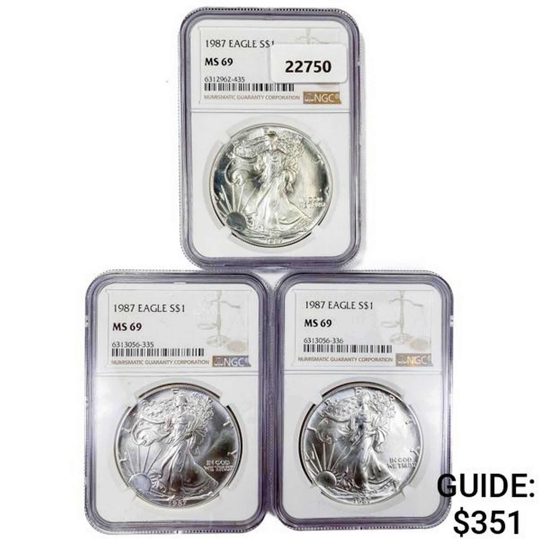 1987 Set (3) American Silver Eagles NGC MS69