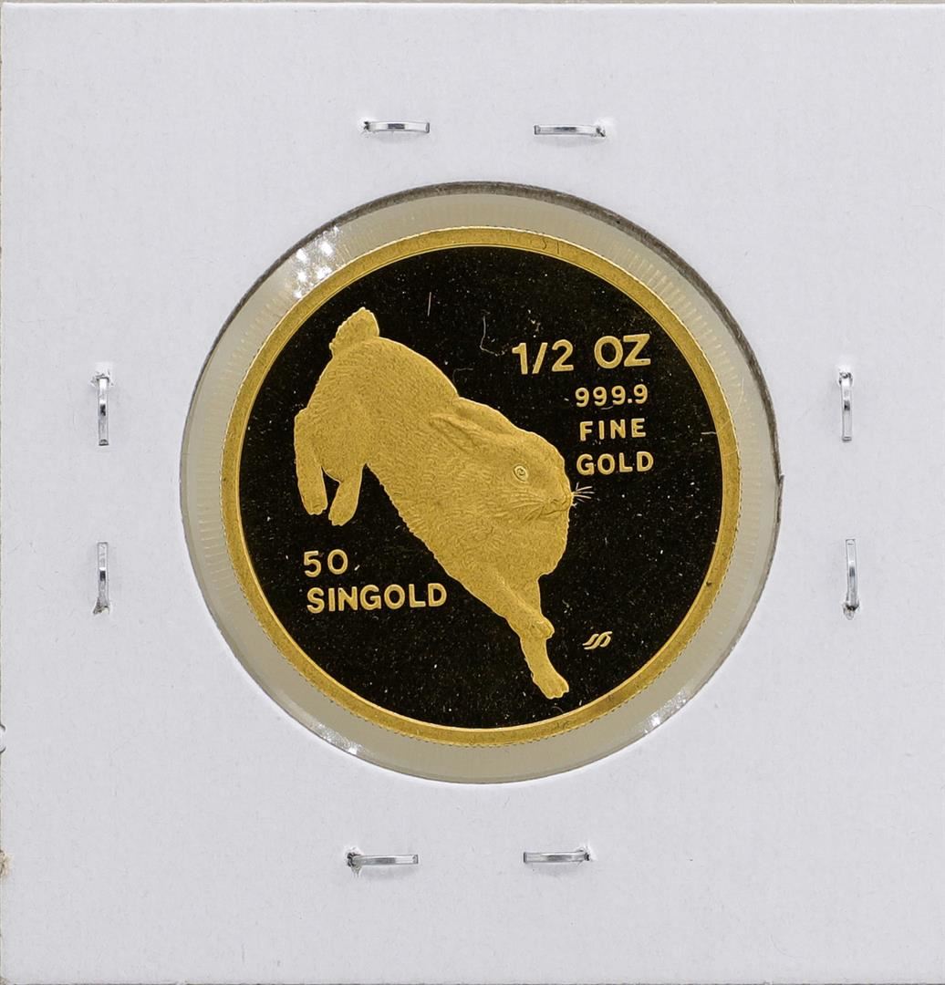 One 1987 Singapore 1/2 Oz. Gold Coin Year of the Rabbit.