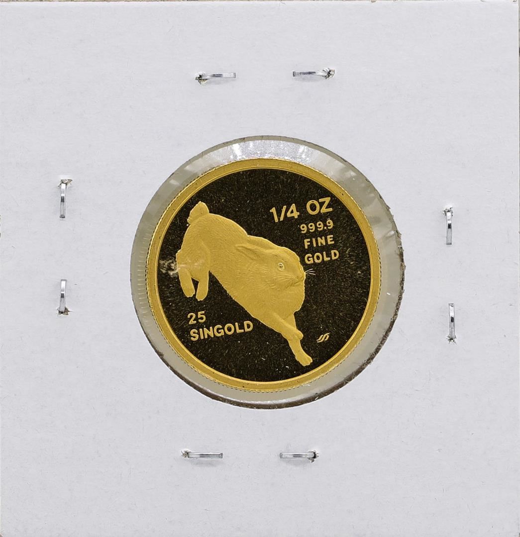 One 1987 Singapore 1/4 Oz. Gold Coin Year of the Rabbit.