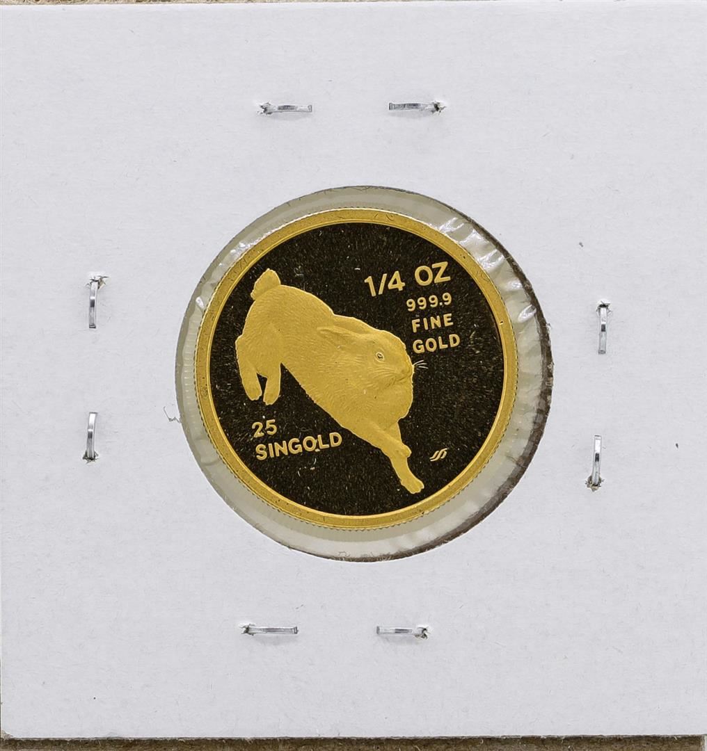 One 1987 Singapore 1/4 Oz. Gold Coin Year of the Rabbit.