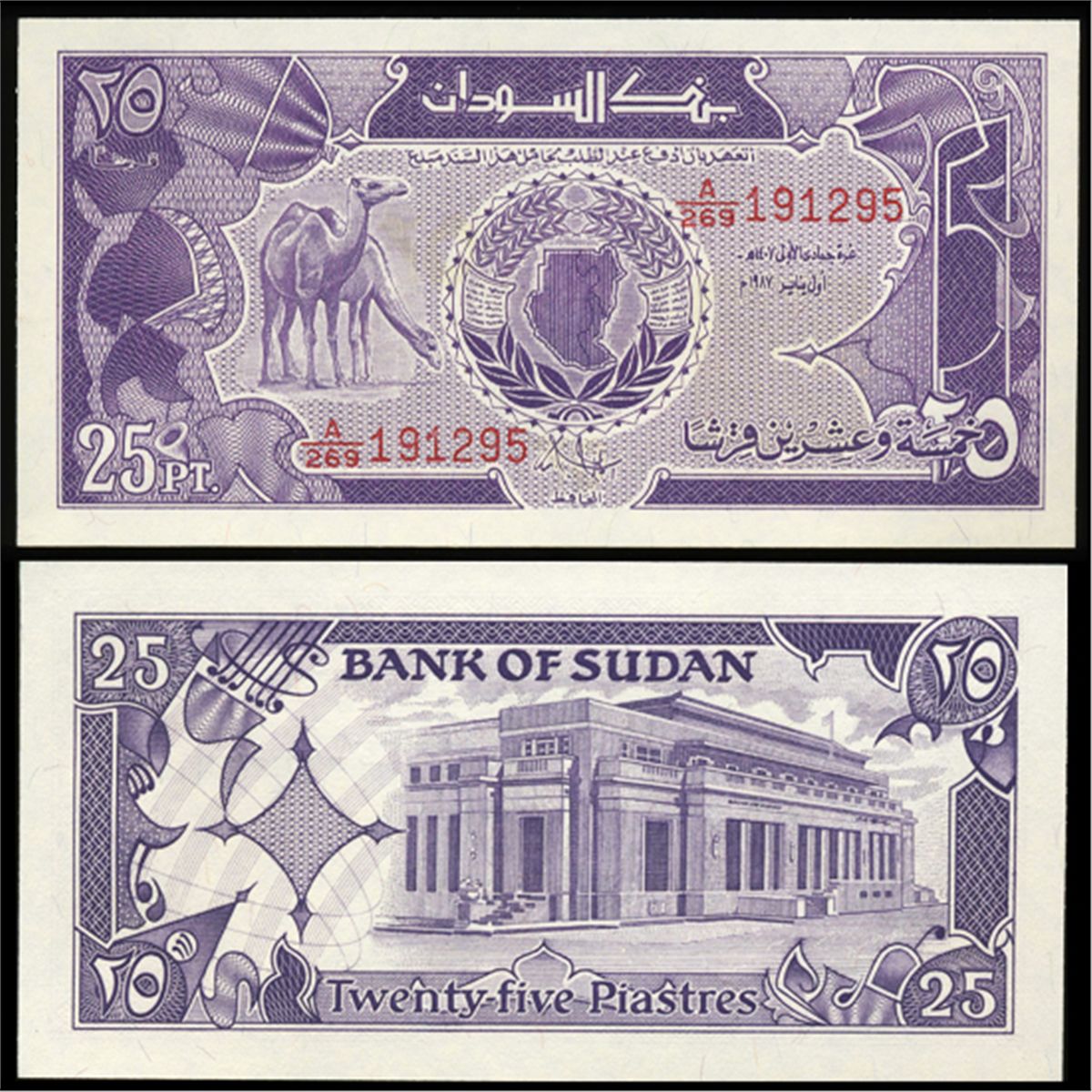 1987 Sudan 25 Piastres Note Crisp Unc (CUR-05715)