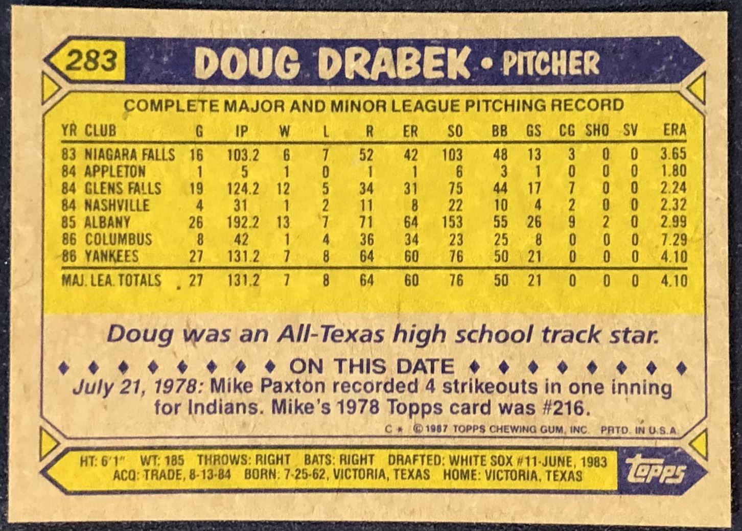 Card #283 MLB, baseball, vintage, rookie