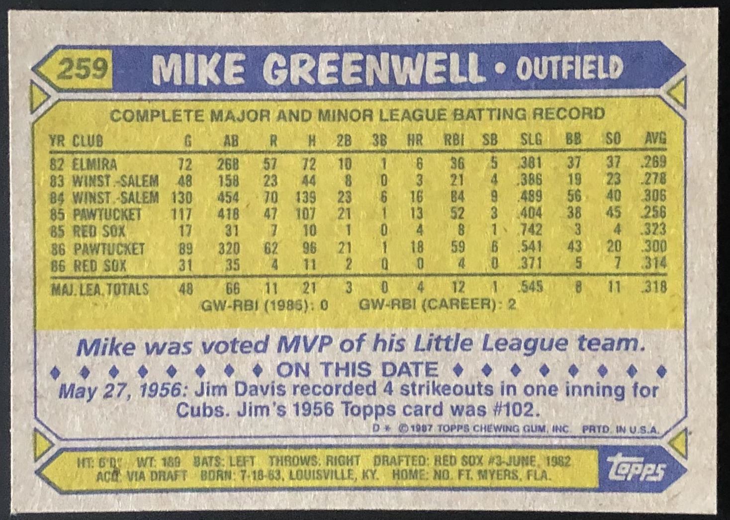 Card #259 vintage, MLB, baseball, rookie