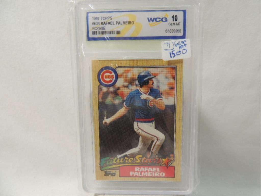 1987 TOPPS RAFAEL PALMEIRO ROOKIE BASEBALL PLAYER CARD #634. GRADED 10 GEM-MT BY WCG.