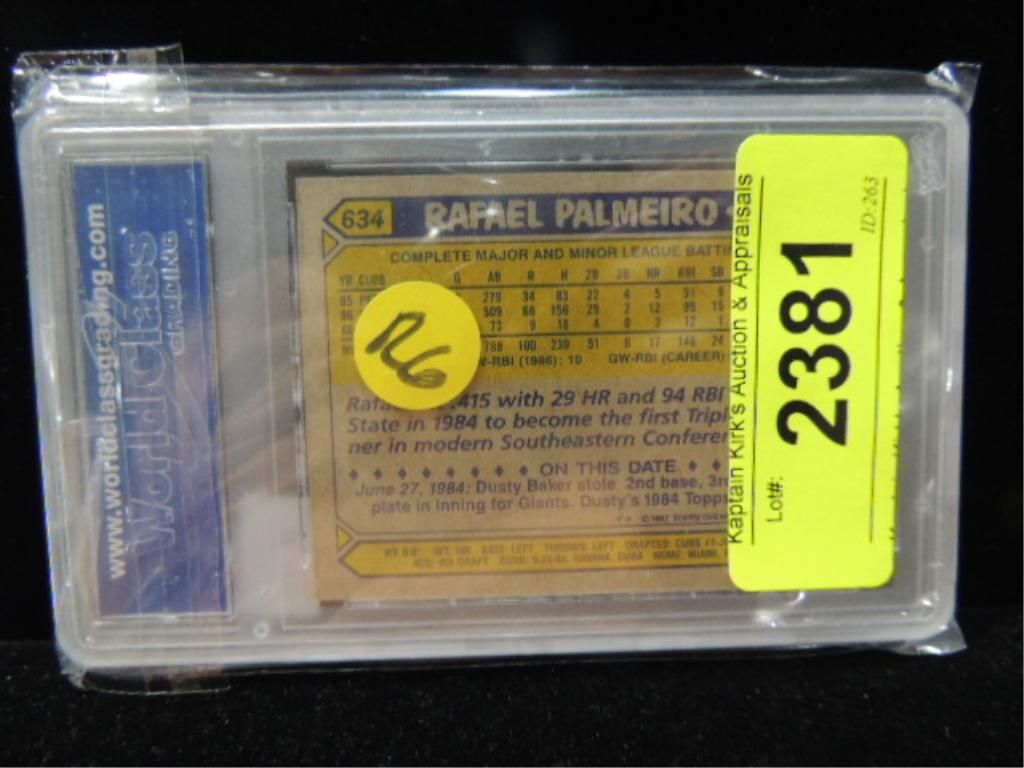 1987 TOPPS RAFAEL PALMEIRO ROOKIE BASEBALL PLAYER CARD #634. GRADED 10 GEM-MT BY WCG.