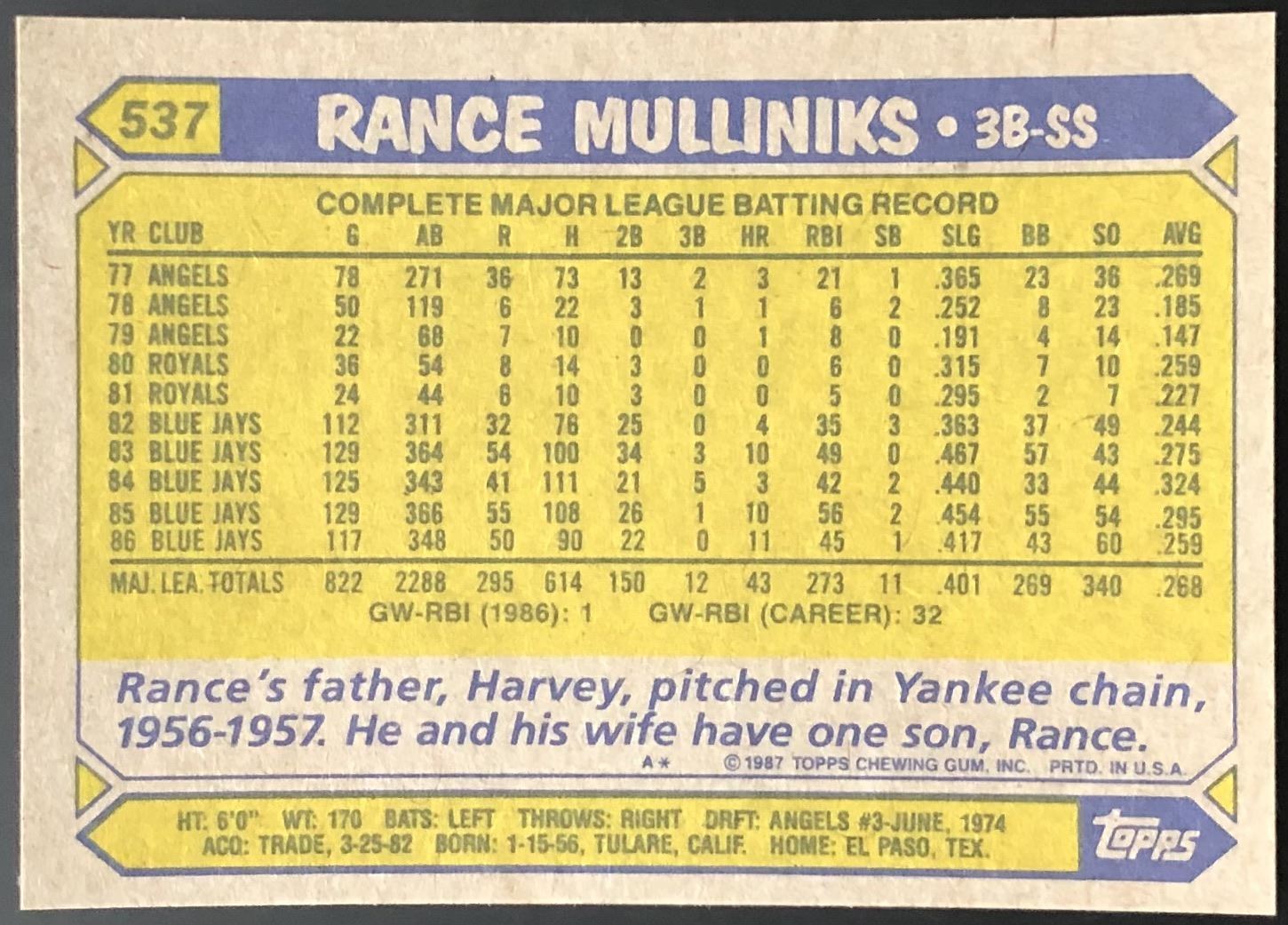 Card #537 MLB, baseball, vintage