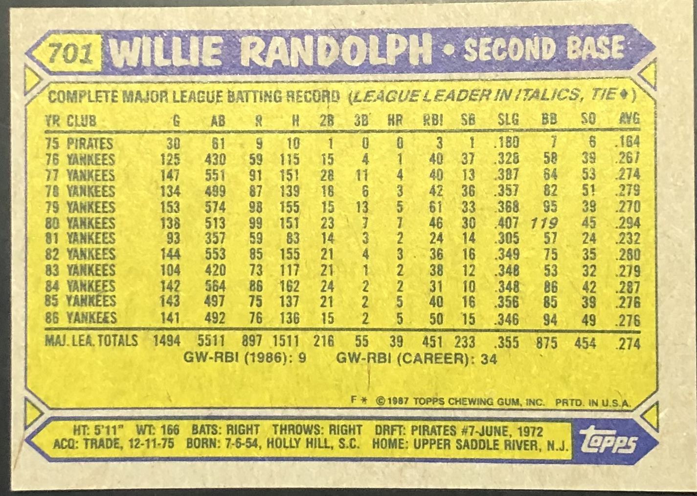 Card #701 MLB, baseball, vintage