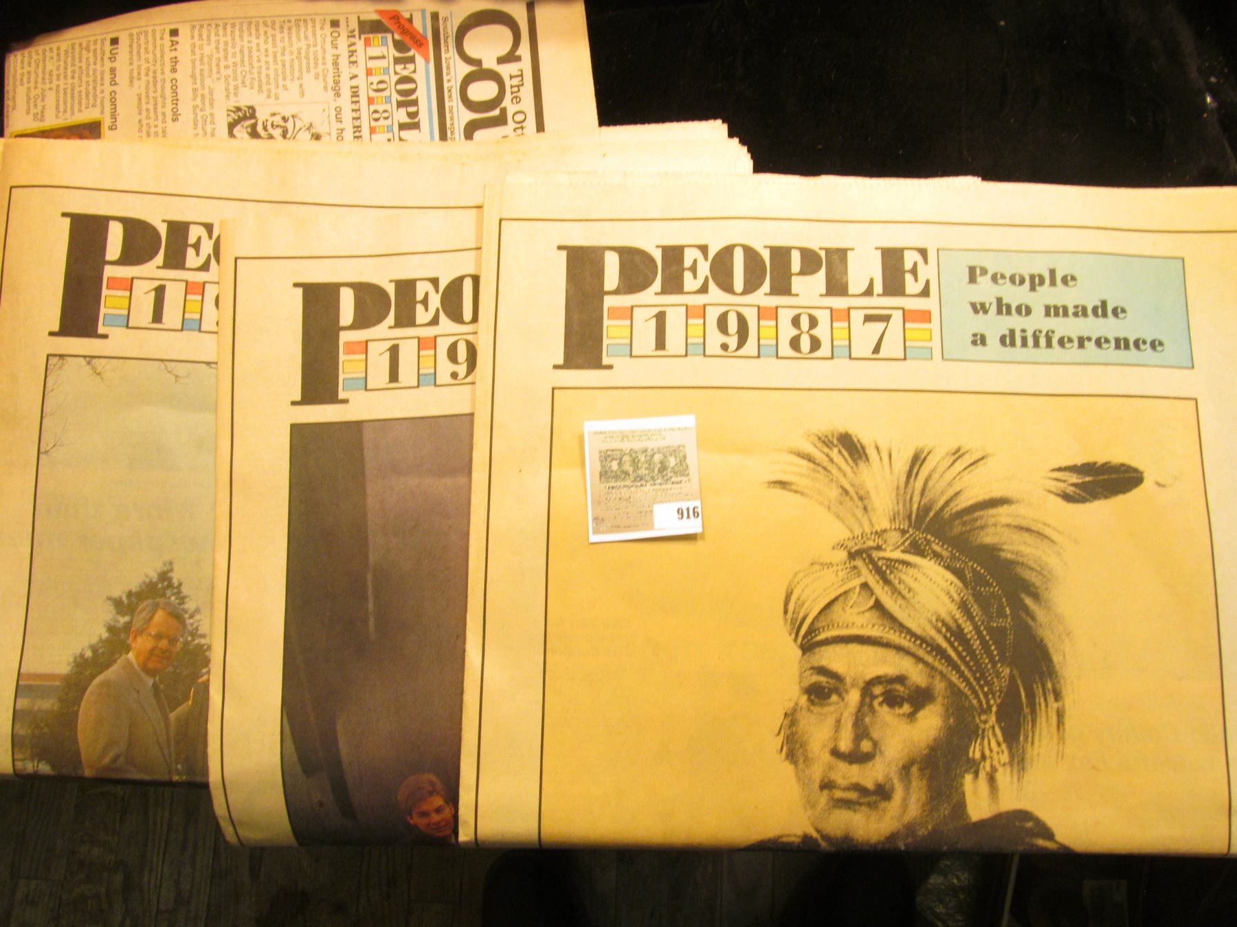 1987 "The Ottumwa Courier" with a full page Color Picture of Chief Wapello and a piece of tanned Calf or Cow Hide.