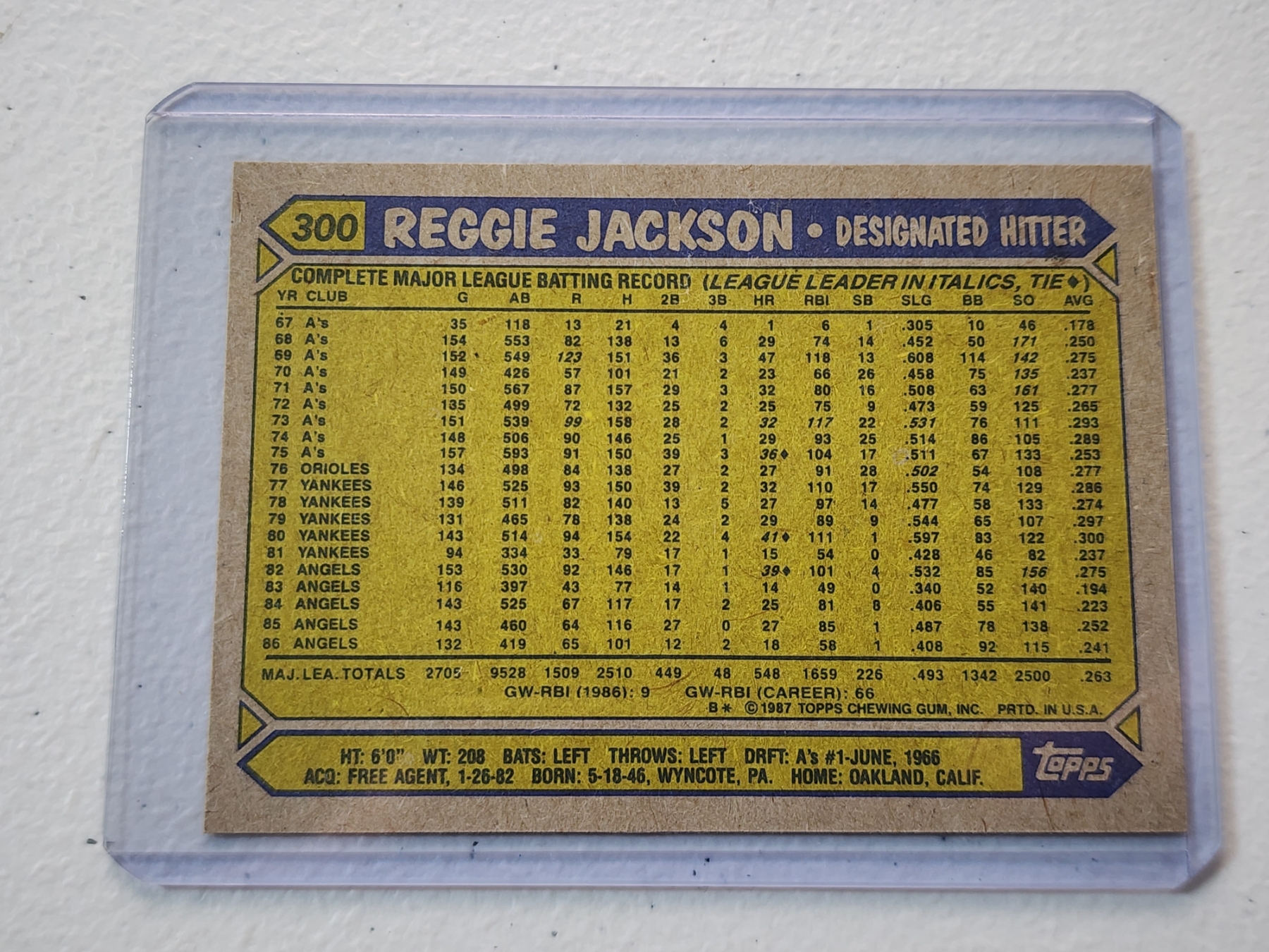 1987 Topps Reggie Jackson Baseball Card #300 - in Protective Holder