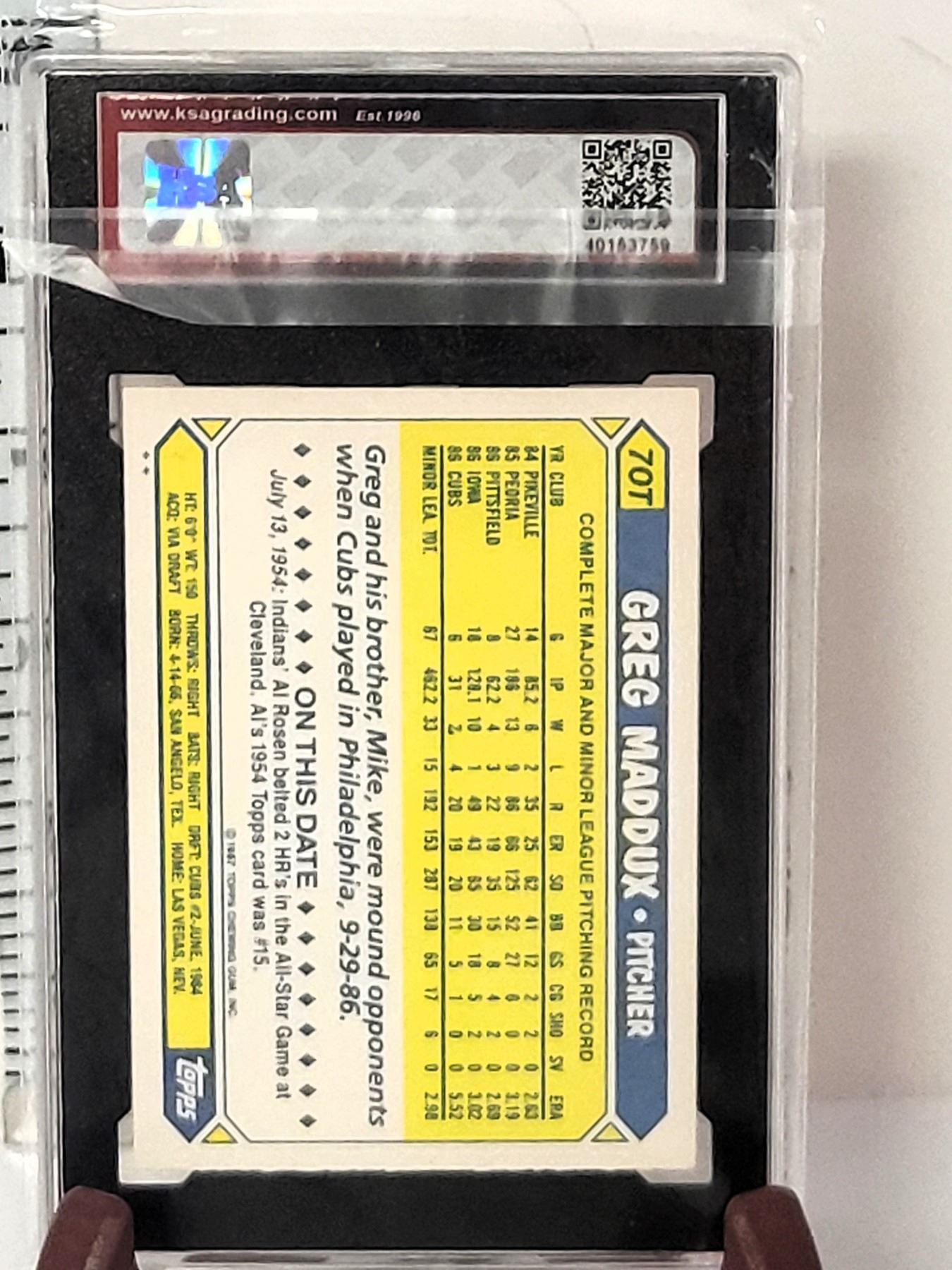 1987 Topps Traded #70T Greg Maddux Rookie Card - Graded 8.5 NMM+