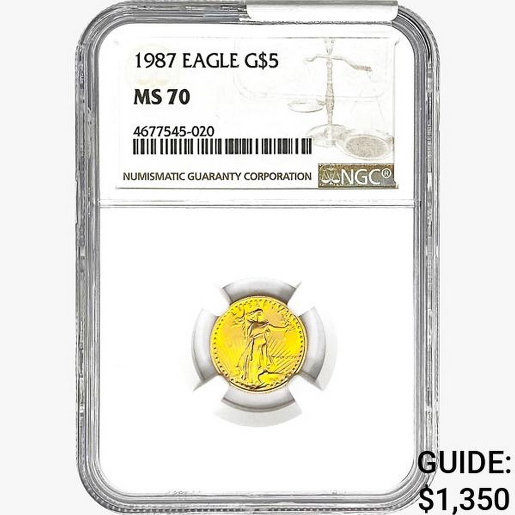 1987 U.S 1/10oz Gold $5 Eagle NGC MS70
