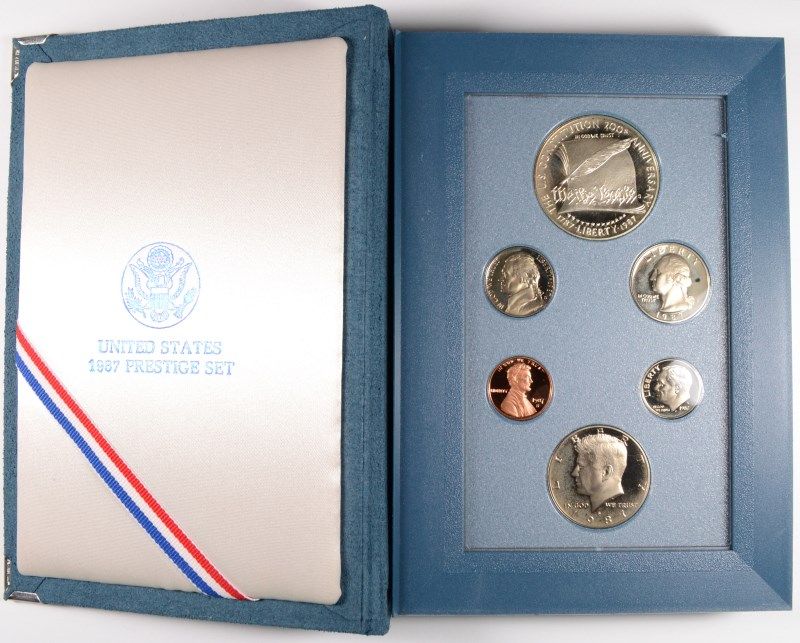 1987 U.S. PRESTIGE PROOF SET, FEATURING CONSTITUTION SILVER DOLLAR