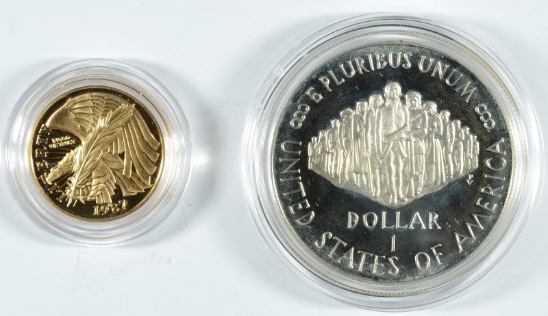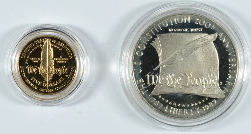 1987 UNITED STATES CONSTITUTION (2 coin) SET, $5 GOLD & $1 SILVER