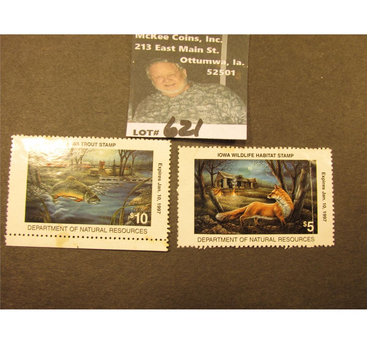 1987 Unsigned Iowa Trout Stamp & 1997 Iowa Wildlife Habitat Stamp Unsigned (depicts a Red Fox).