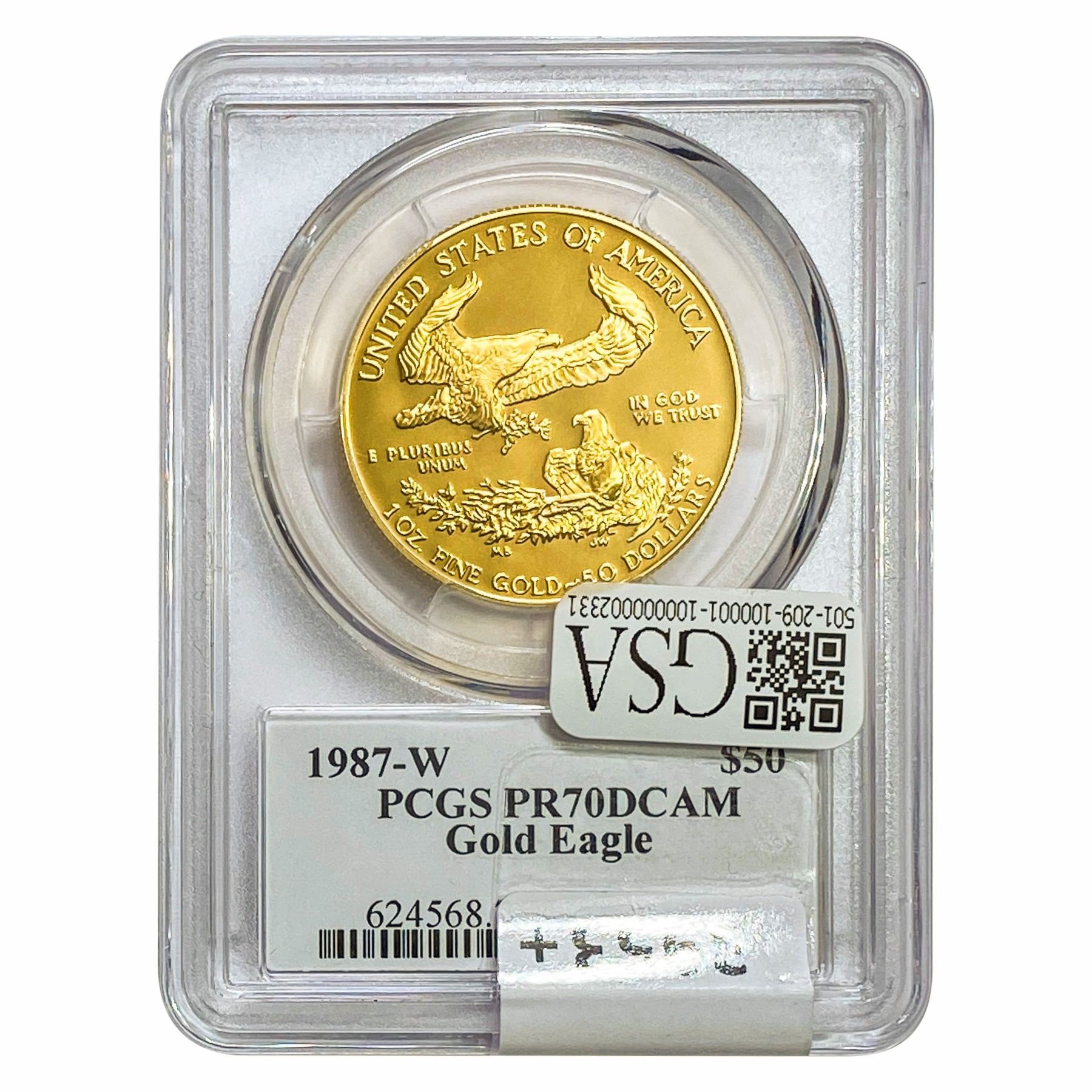 1987-W 1oz $50 AGE PCGS PR70 DCAM