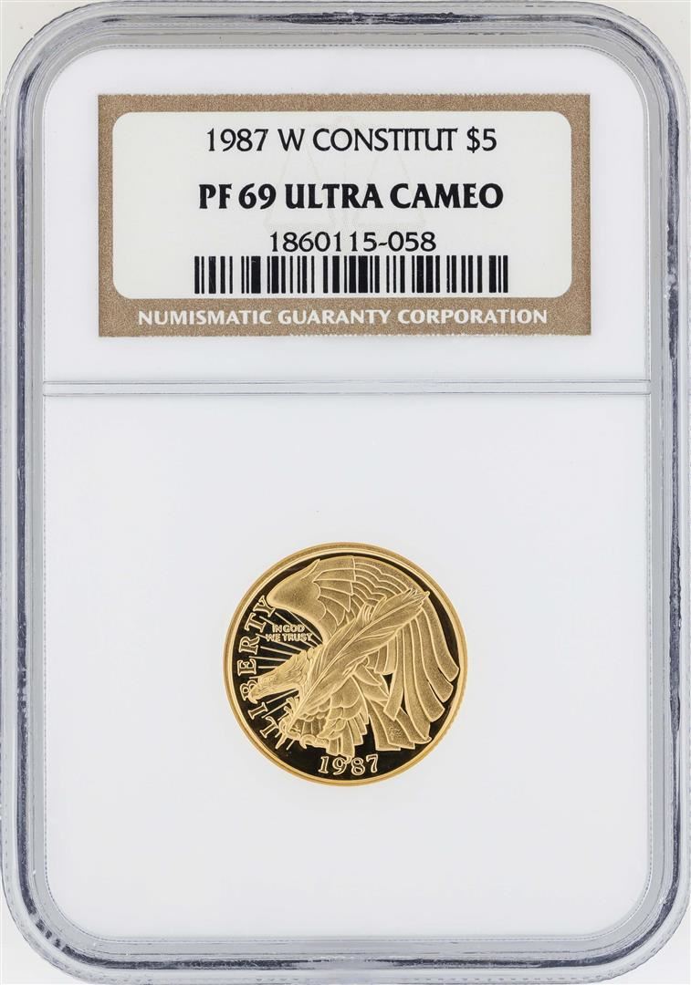 One 1987-W $5 Constitution Commemorative Gold Coin NGC PF69 Ultra Cameo. NGC Certified.