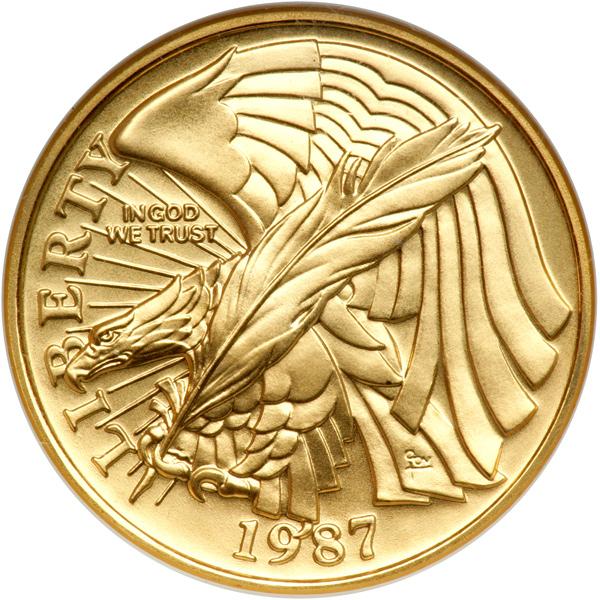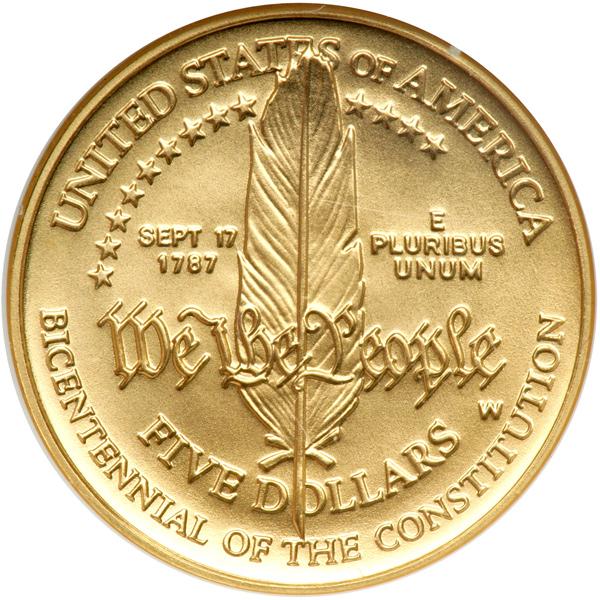 1987-W $5 Unc. Constitution. NGC graded MS-70. A perfect coin.
