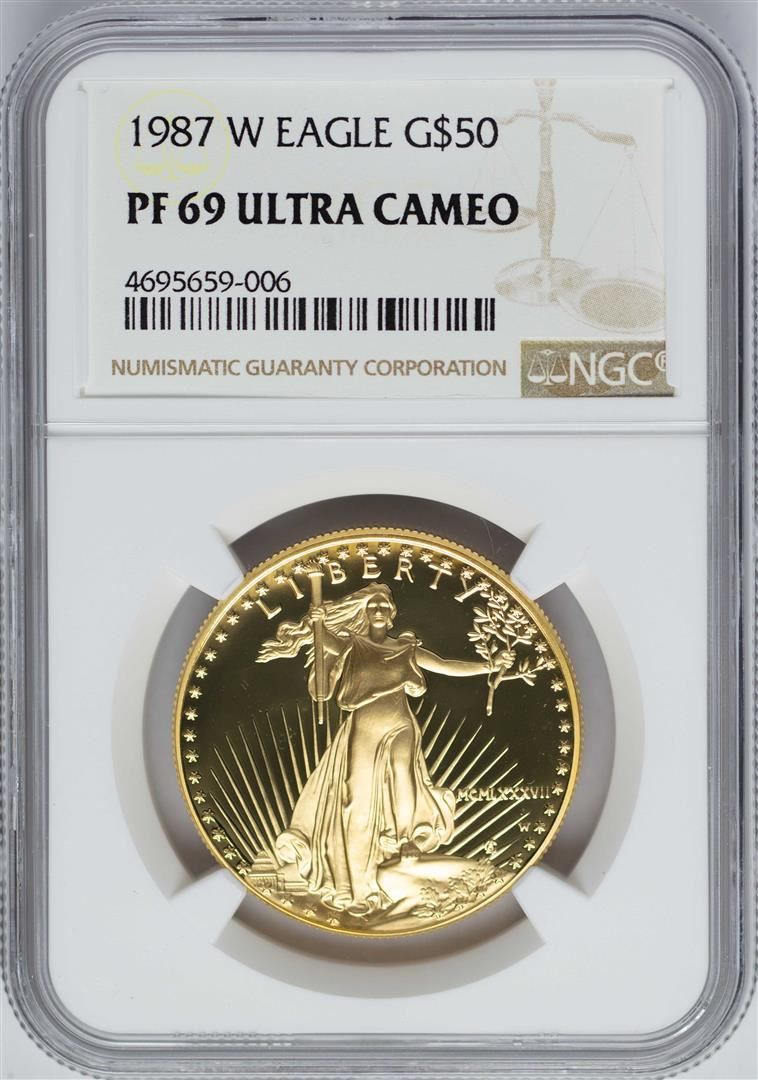 One 1987-W $50 American Gold Eagle Coin NGC PF69 Ultra Cameo. NGC Certified.