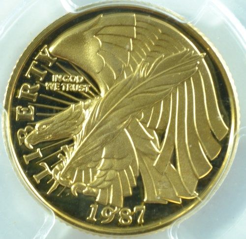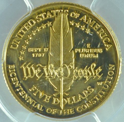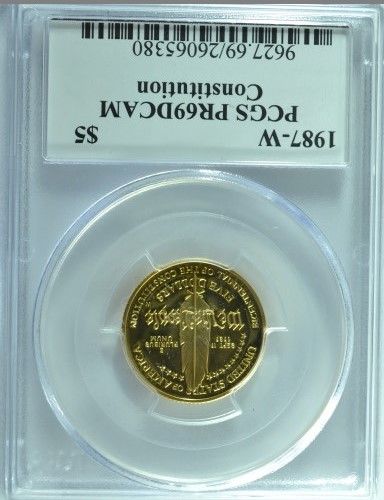 1987-W CONSTITUTION $5.00 GOLD COMMEMORATIVE , PCGS PR-69 DCAM