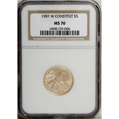 1987-W G$5 Constitution Gold Five Dollar MS70 NGC.