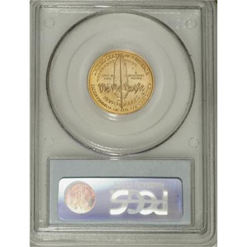 <B>1987-W G$5 Constitution Gold Five Dollar MS70 PCGS.</B></I> PCGS Population (287/0). NGC Census: (3609/0). Mintage: 214,225. Numismedia Wsl. Price for NGC/PCGS coin in MS70: $224. (#9626)<BR><BR><b>Shipping:</b> Coins & Currency (<a target="_blank" href="http://www.heritageauctions.com/common/shipping.php">view shipping information</a>)