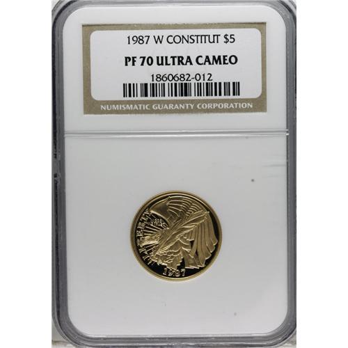 1987-W G$5 Constitution Gold Five Dollar PR70 Deep C