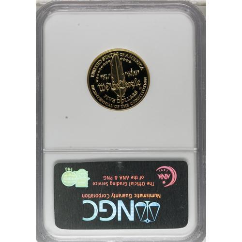<B>1987-W G$5 Constitution Gold Five Dollar PR70 Deep Cameo NGC.</B></I> NGC Census: (7/0). PCGS Population (88/0). Mintage: 651,659. Numismedia Wsl. Price for NGC/PCGS coin in PR70: $300. (#9627)<BR><BR><b>Shipping:</b> Coins & Currency (<a target="_blank" href="http://www.heritageauctions.com/common/shipping.php">view shipping information</a>)