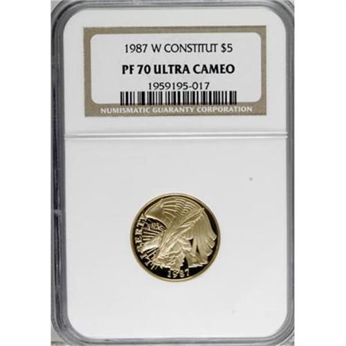 1987-W G$5 Constitution Gold Five Dollar PR70 Deep C