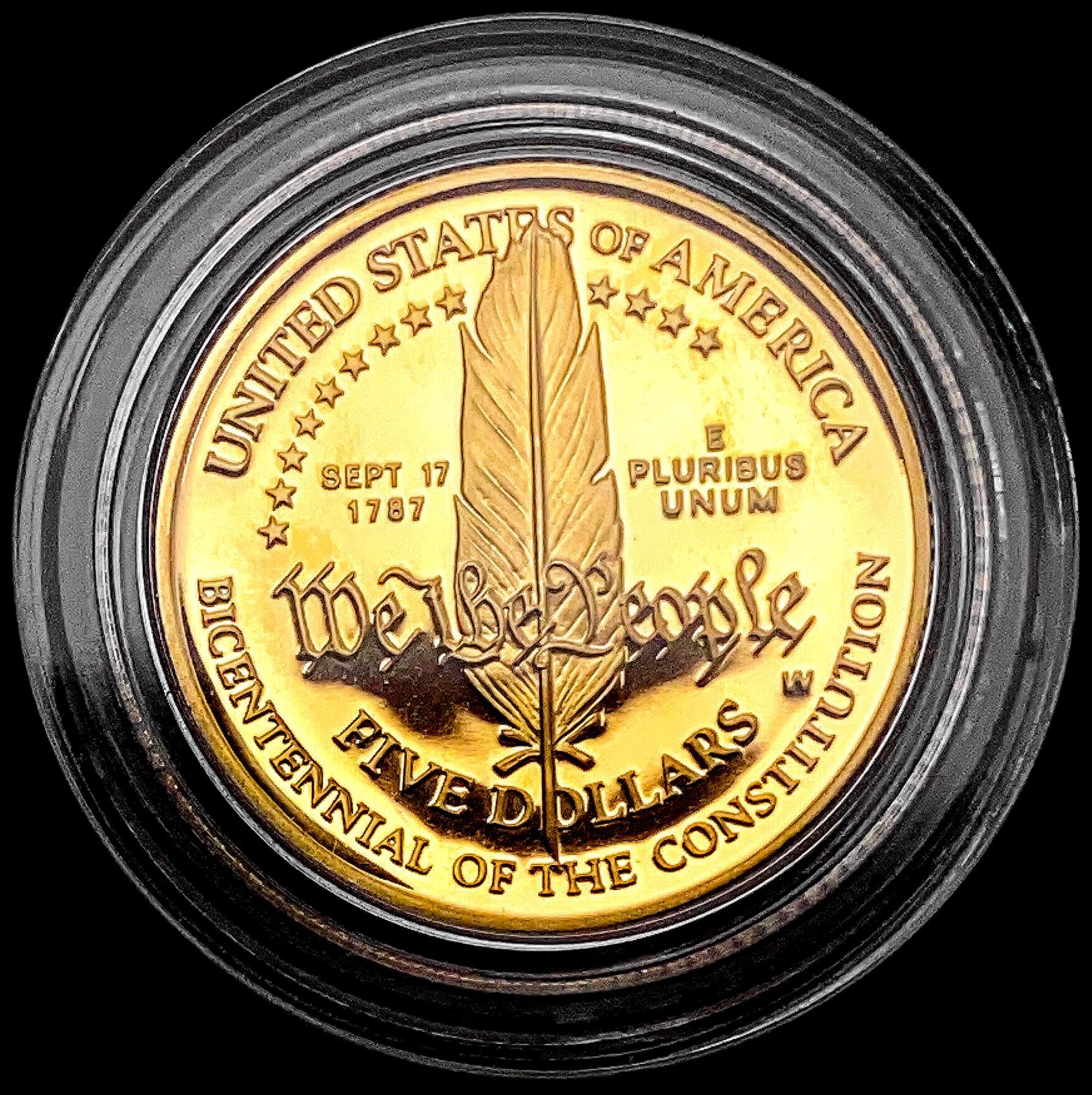 1987-W US .25oz Gold Commem $5 GEM PROOF