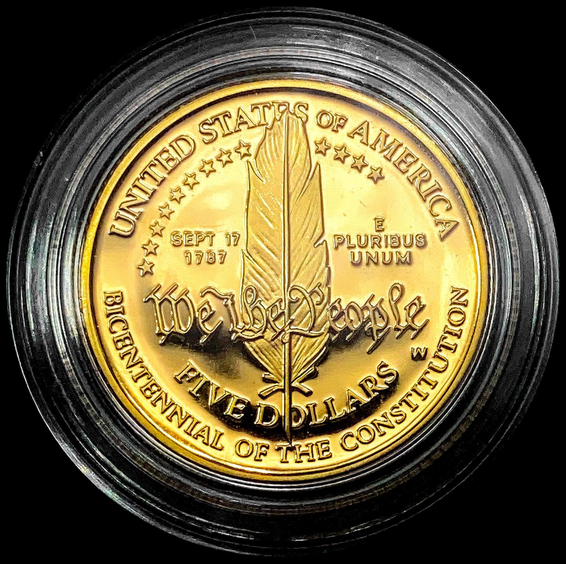 1987-W US .25oz Gold Commem $5 GEM PROOF