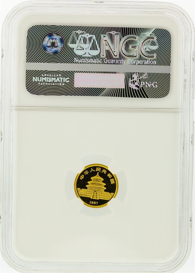 One 1987-Y NGC MS69 5Y 1/20 Oz. Gold Panda Coin. NGC Certified.