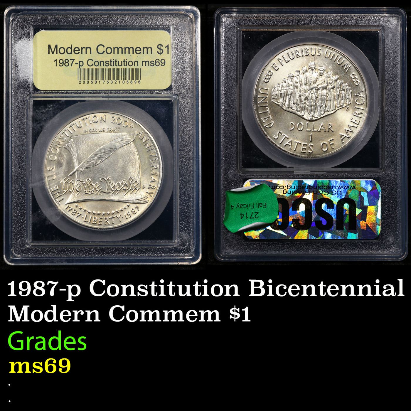 1987-p Constitution Bicentennial Modern Commem Dollar $1 Graded Gem+++++ Unc BY USCG.