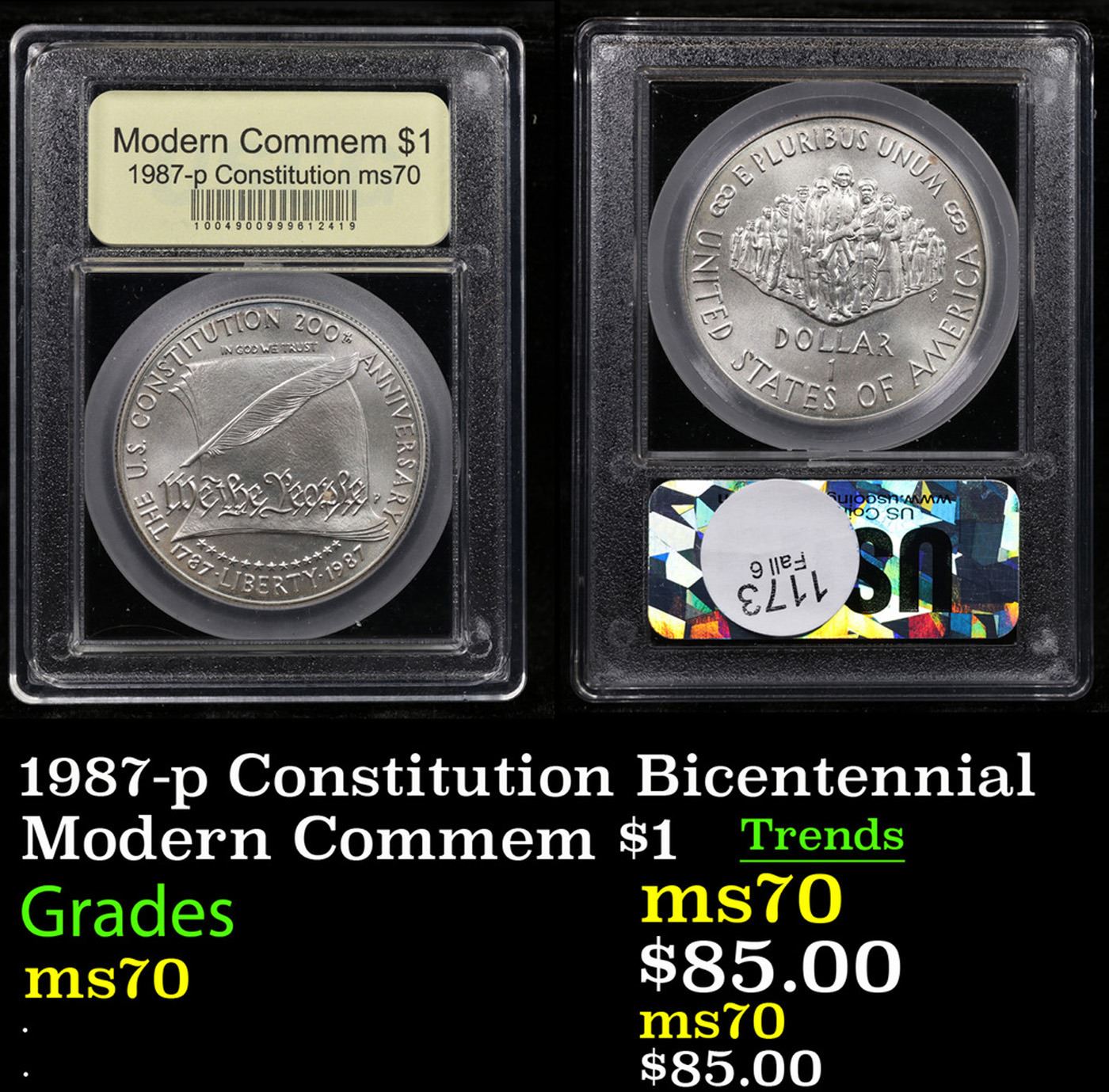 1987-p Constitution Bicentennial Modern Commem Dollar $1 Graded ms70 By USCG.