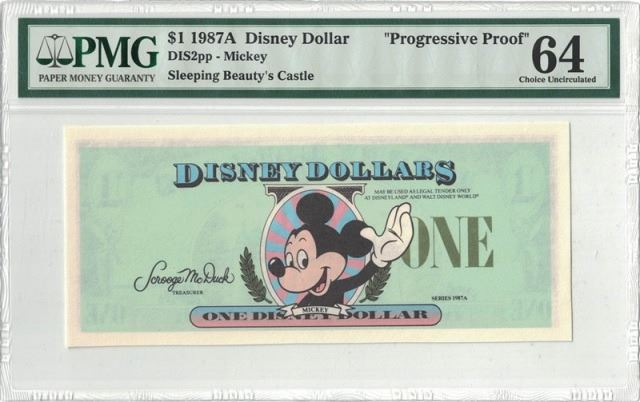 One 1987A $1 Mickey Disney Dollar PMG 64.