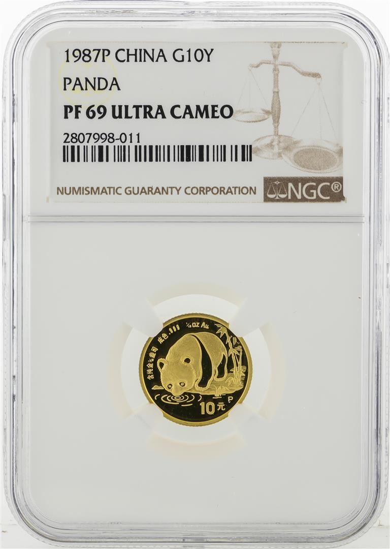 One 1987P China 10 Yuan Panda Gold Coin NGC PF69 Ultra Cameo. NGC Certified.