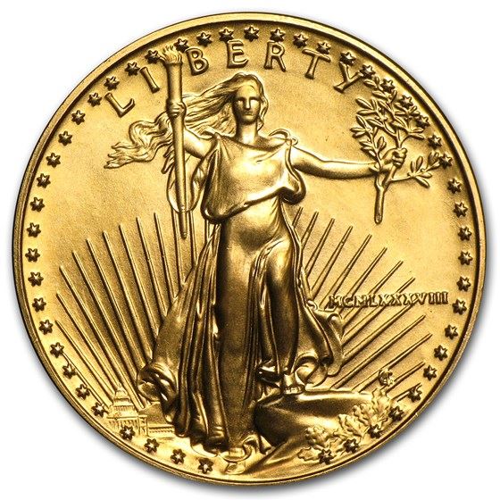 One piece 1988 1/2 oz Gold American Eagle BU (MCMLXXXVIII)