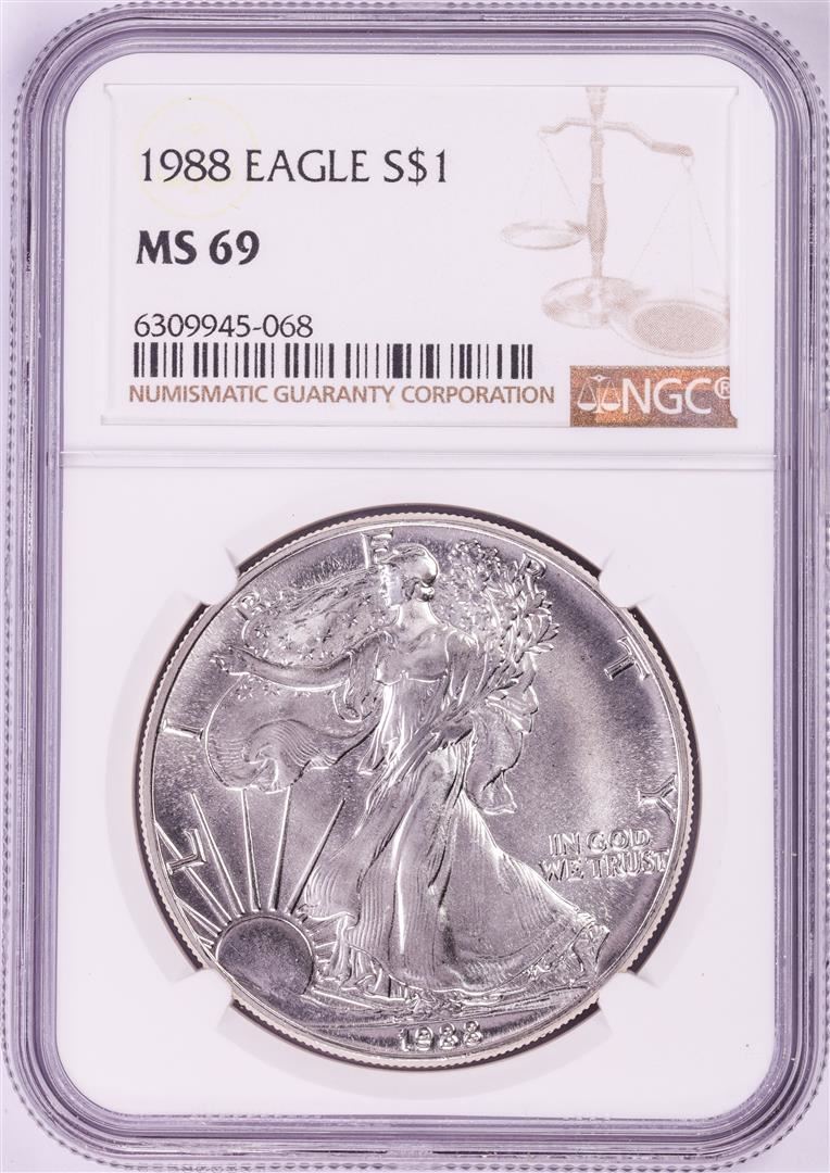 One 1988 $1 American Silver Eagle Coin NGC MS69. NGC Certified.