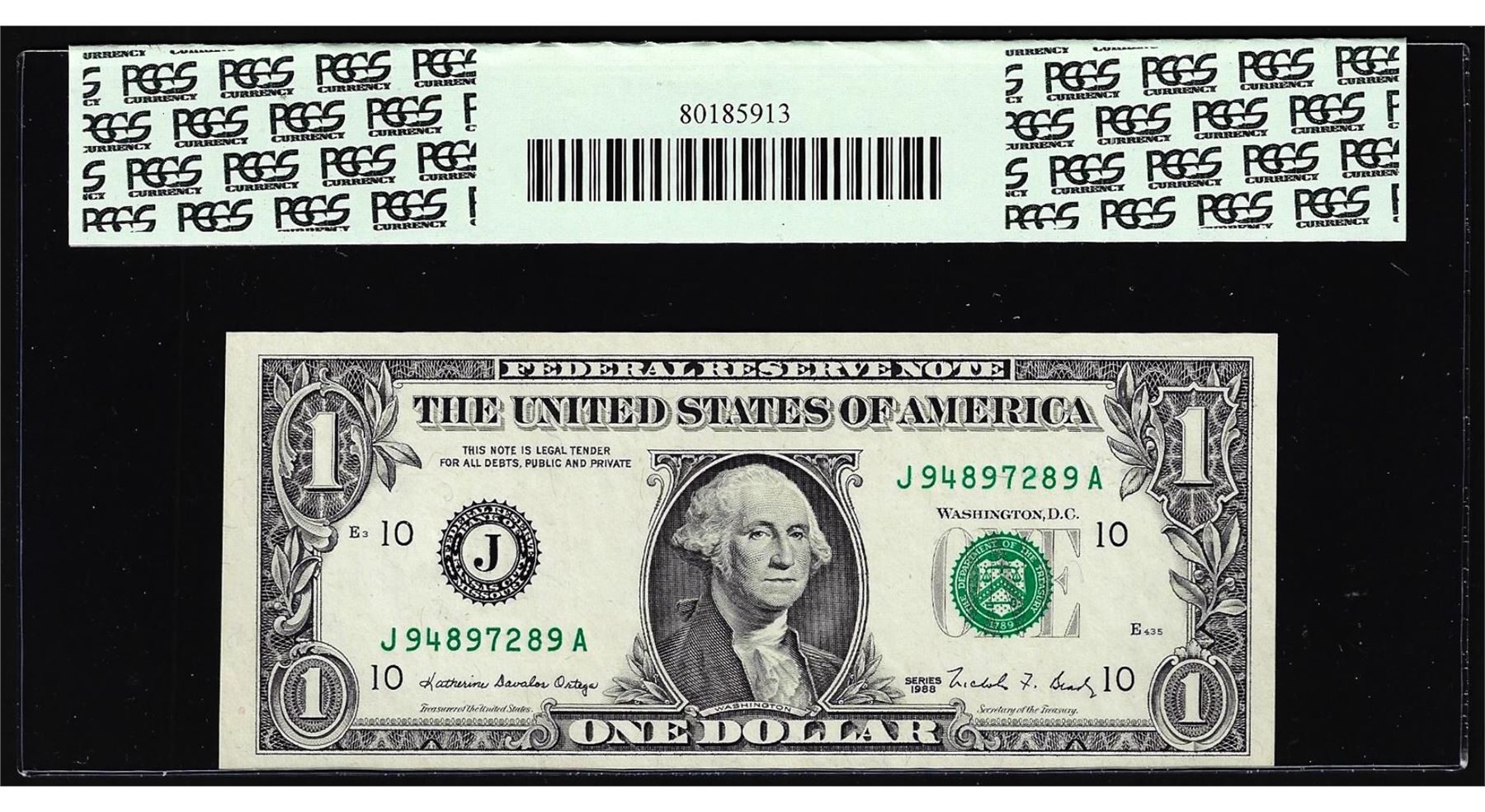One 1988 $1 Federal Reserve Note Insufficient Ink Error PCGS Very Choice New 64PPQ. PCGS Graded.