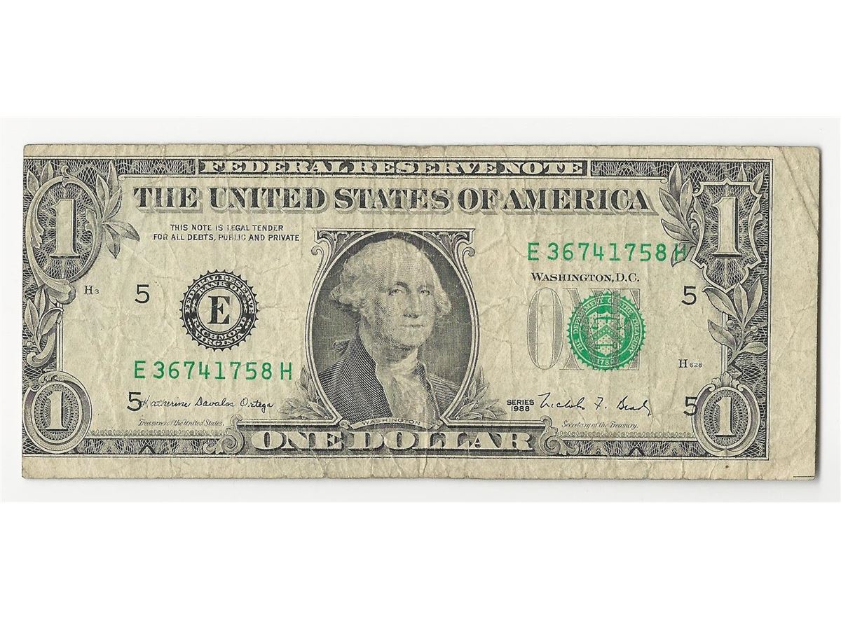 One 1988 $1 Federal Reserve Note Misalignment ERROR.