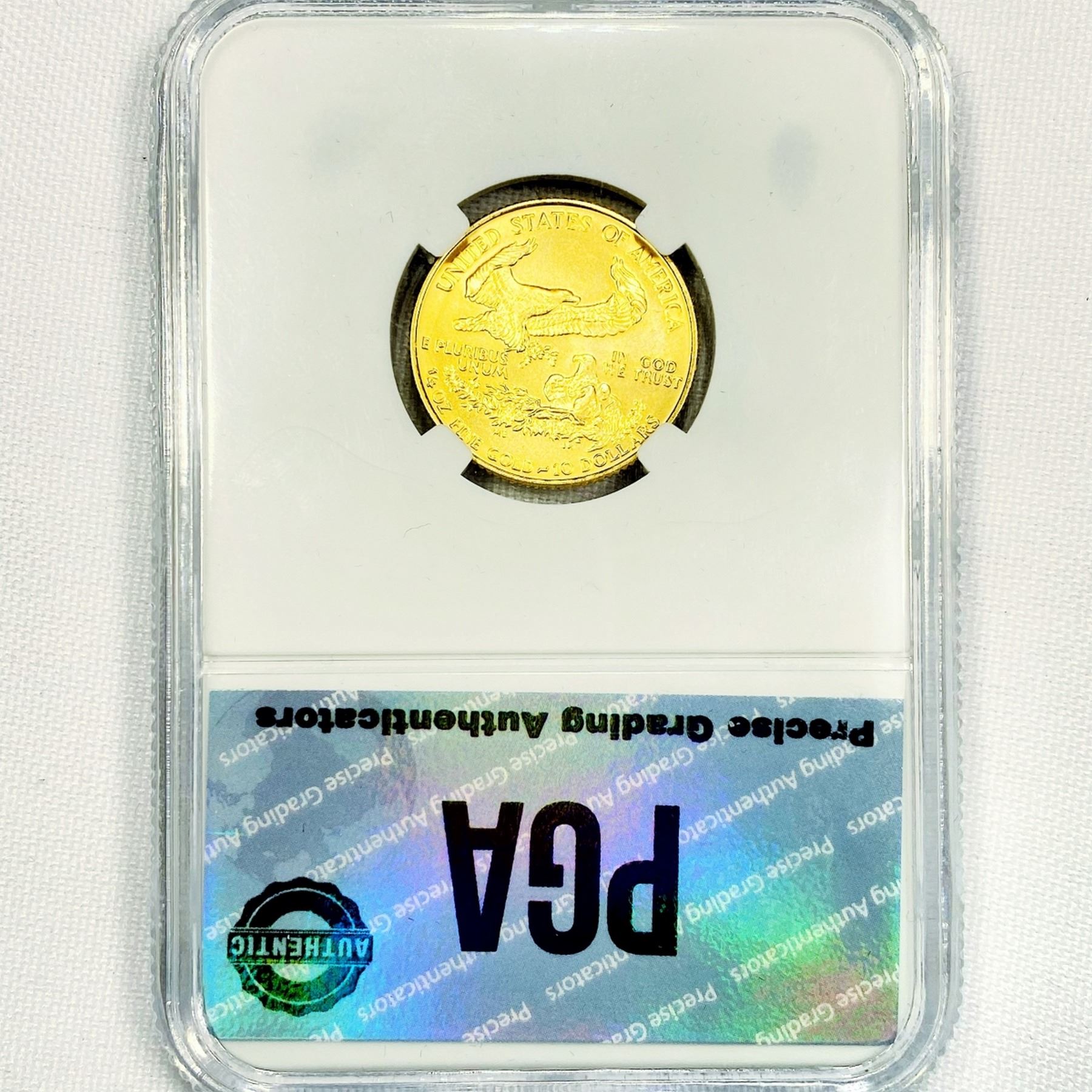 f. Notes sold referencing a third-party grading service are sold “AS IS'' without any express or implied warranty, except for guarantee by GSA that they are genuine. Grading, condition or other attributes of any Product may have a material effect on its value and the opinion of others, including third-party grading services such as PCGS Currency and PMG may differ with that of GSA. GSA shall not be bound by any prior or subsequent opinion, determination, or certification by any grading service. Bidders specifically waive any claim to right of return of any Product because of the opinion, determination, or certification, or lack thereof, by any grading service. Certain warranties may be available from the grading services and Bidders are referred to them for further details: Paper Money Guaranty (PMG), PO Box 4711, Sarasota, FL 34230; PCGS Currency, PO Box 10470, Peoria , IL 61612-0470; PCGS Gold Shield, PO Box 9458, Newport Beach, CA 92658. Third-party graded notes are not returnable for any reason whatsoever.