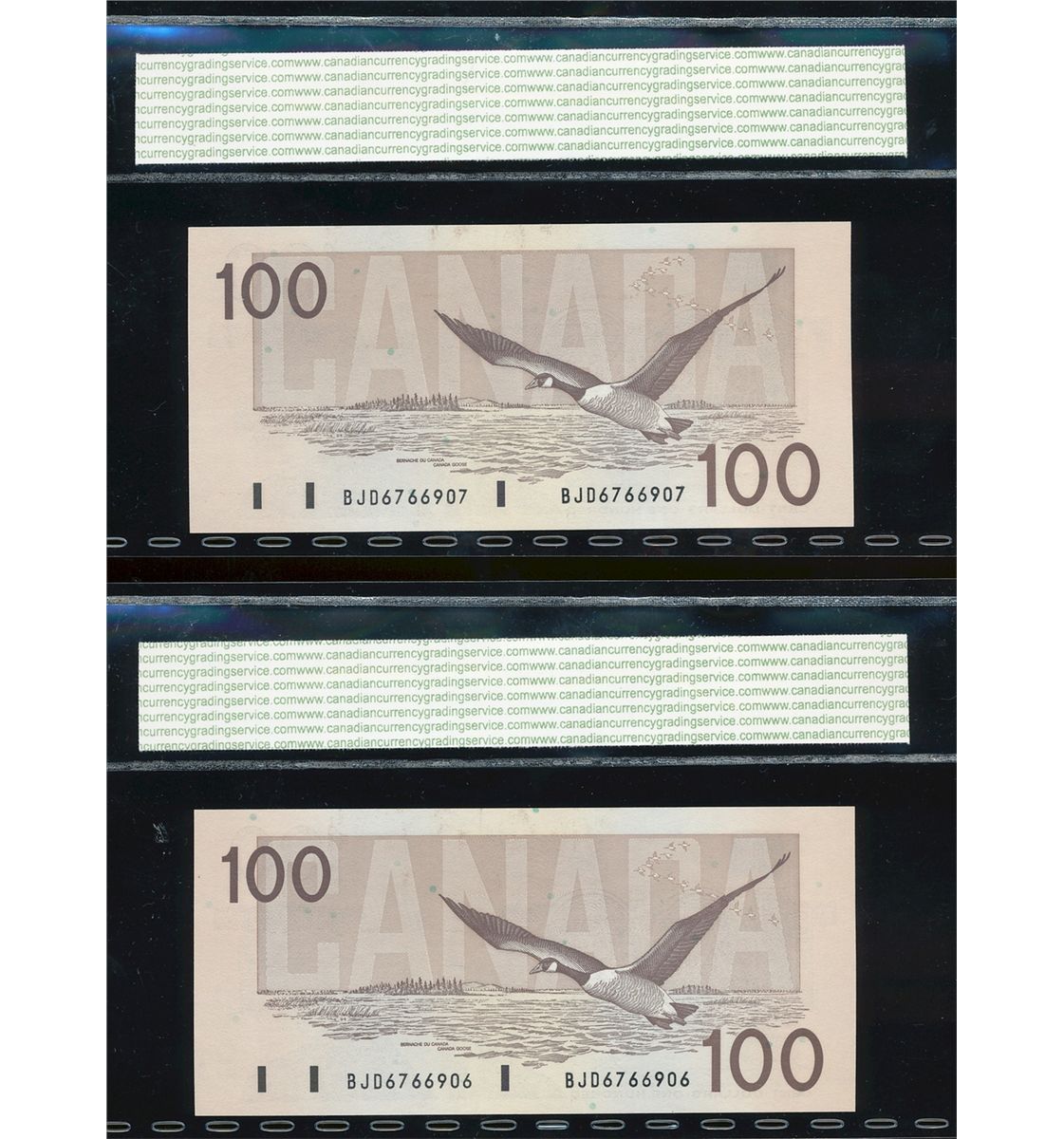 1988 $100 BC-60a #BJD6766907/906 both CCGS CH UNC64.