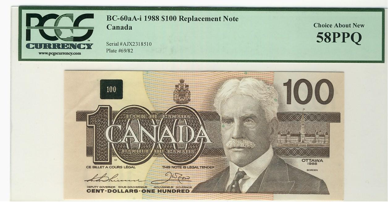 1988 $100 BC-60aA-i #AJX2318510 PCGS AU58PPQ