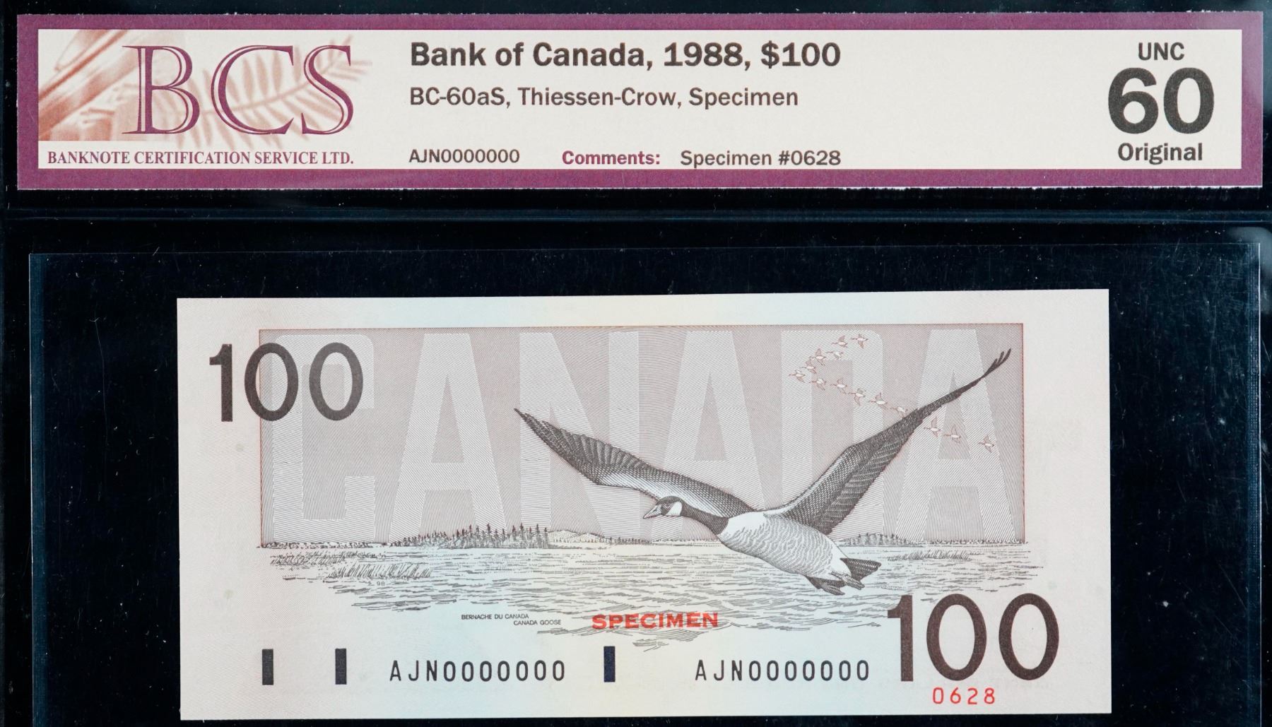 1988 $100 BC-60aS #0628 #AJN0000000, BCS Uncirculated-60.