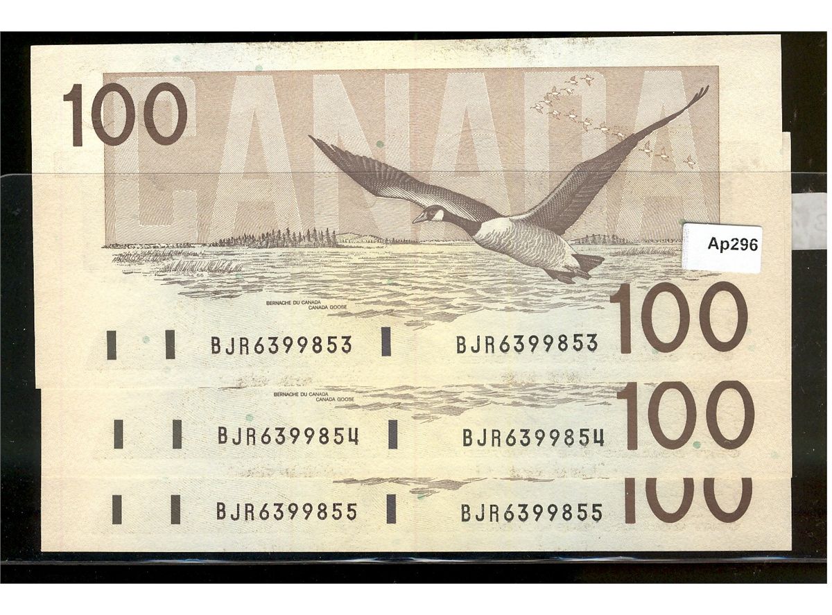 1988 $100 BC-60d #BJR6399853-855. Lot of 3 Original Crisp UNC issues.